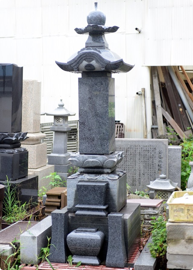 昔ながらの和型墓石に豪華な笠の付いたタイプです。